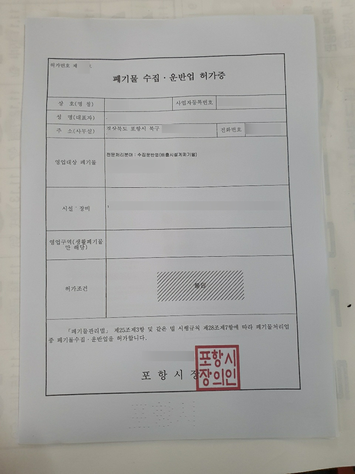 오늘은 포항에서 진행했던 폐기물수집운반업 허가 관련된 내용입니다.