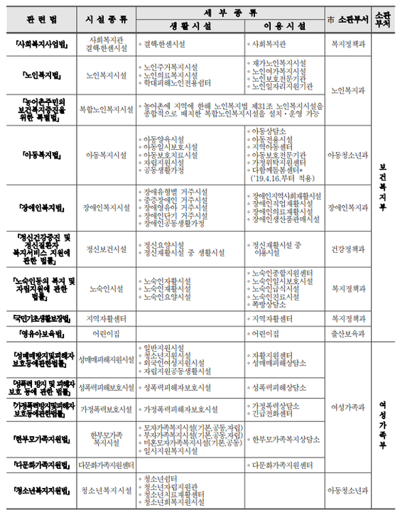 사회복지법인의 목적사업이 될 수 있는 관련 법안 및 시설