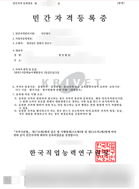 다문화놀이체험강사,폭력예방지도사 민간자격 등록 사례