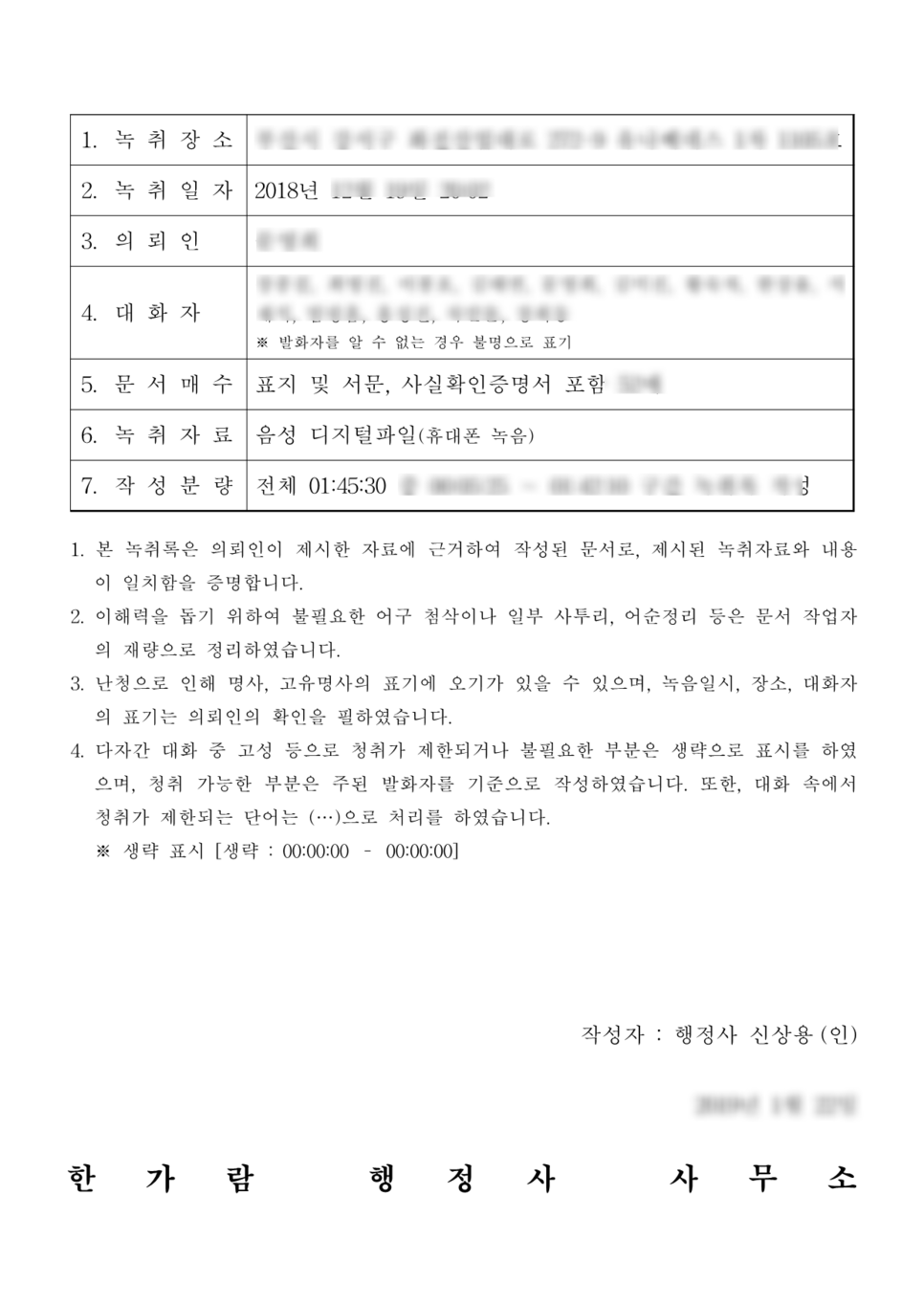 주요 내용만 발췌하여 부분 녹취록 작성도 가능하오니 필요하면 문의주시기 바랍니다.