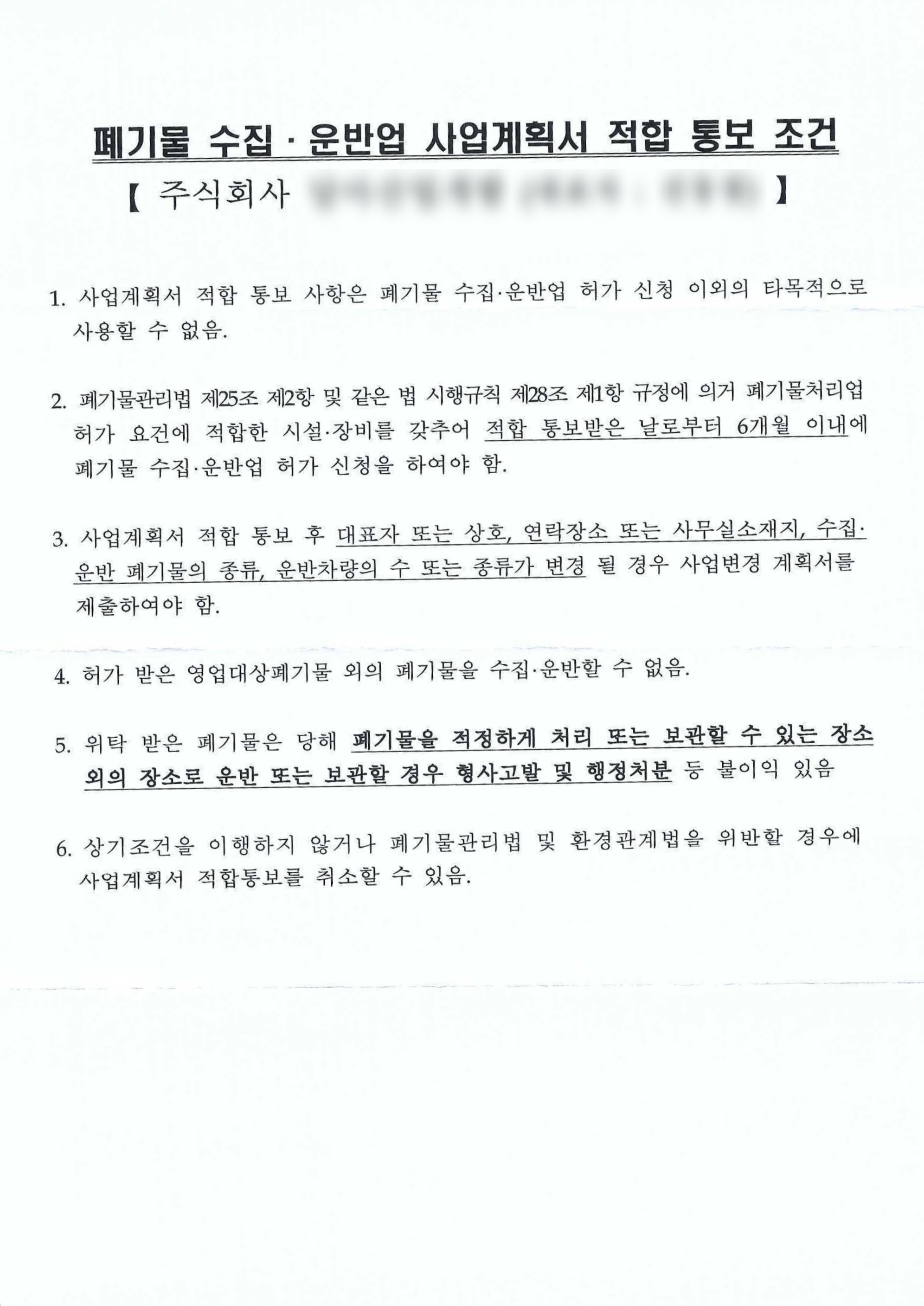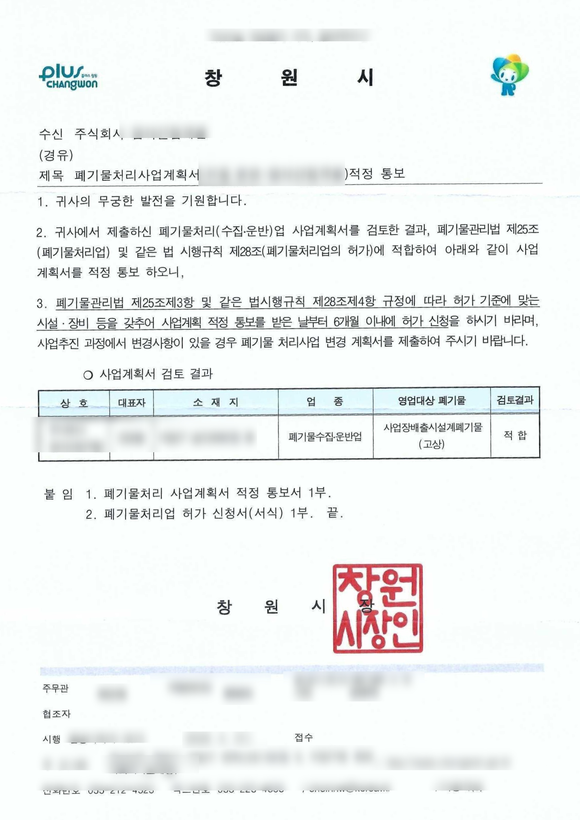 [폐기물수집운반법]창원시/사업계획서적합통보/성공사례/사업장폐기물