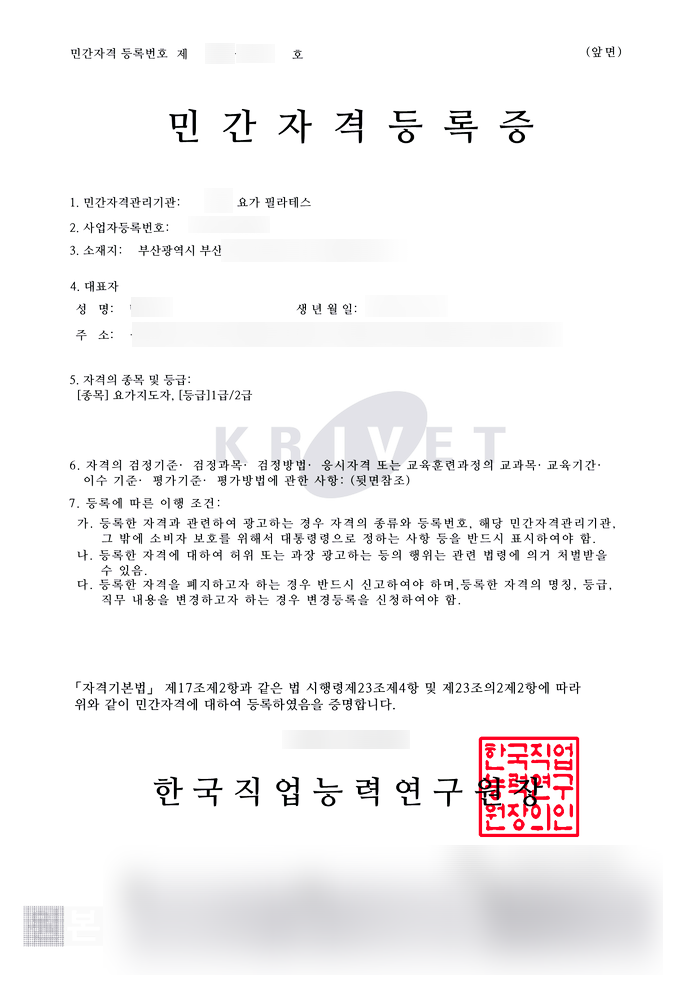 최근에는 많은 필라테스, 요가 대표님들이 훨씬 절차가 간편한 직접 협회(임의단체, 법인으로 보는 단체)를 설립하고, 자격증도 발급하고 있습니다.