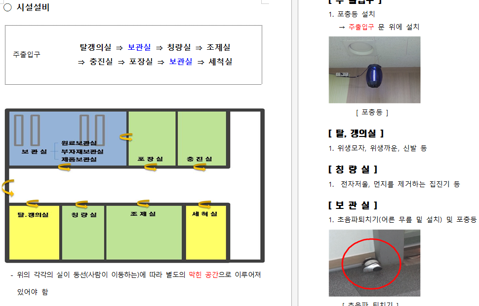 - 제조소 내에 있는 시설(화장품 제조 장비, 구역, 포충등 등)