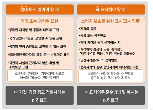 취업 보장, 고소득 가능, 채용 가산점 등의 표현도 쓰시면 안됩니다.