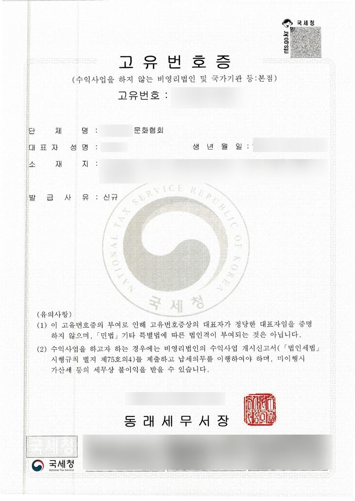 비법인단체 등록 / 설립 서류 및 절차 / 고유번호증