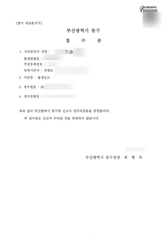 오늘 베트남 배우자와의 혼인관계에서 출생한 자녀의 출생신고를 했습니다.