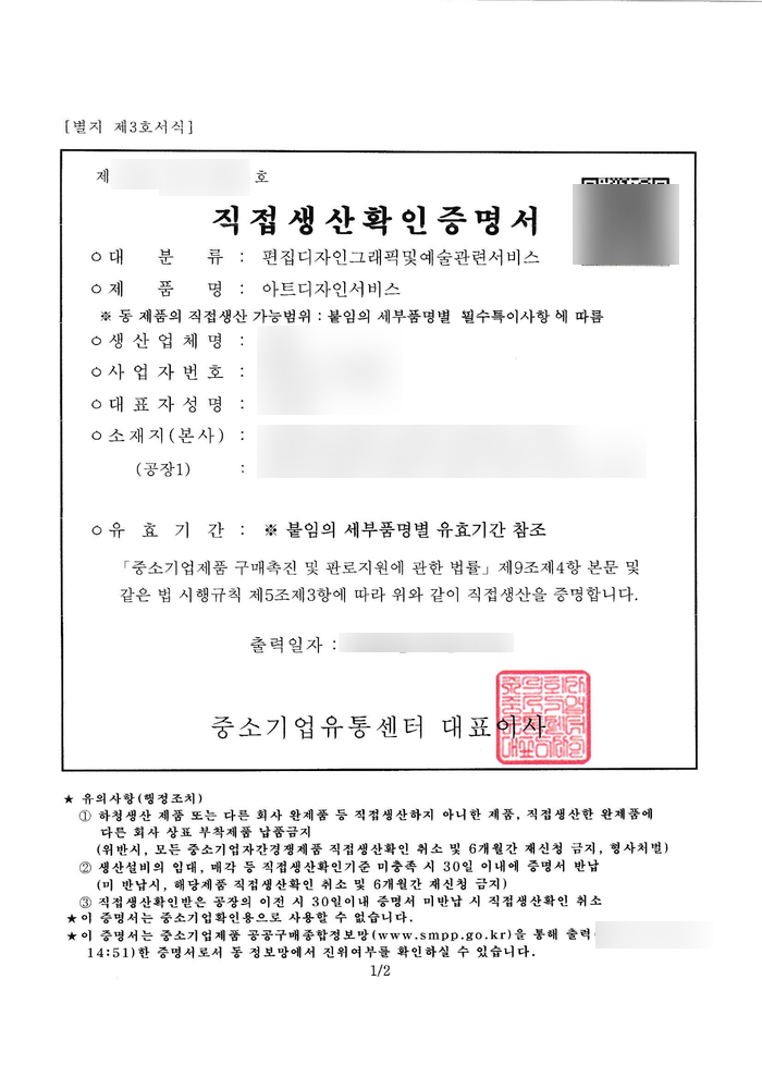 편집디자인, 그래픽, 예술관련서비스 직접생산증명서 발급이 필요하신 분들은