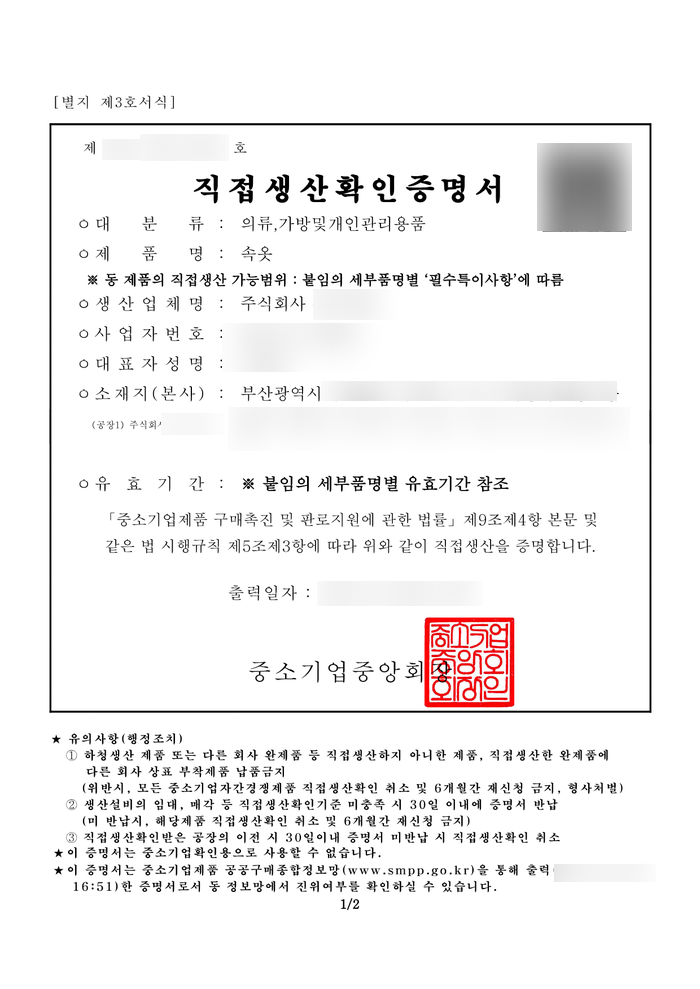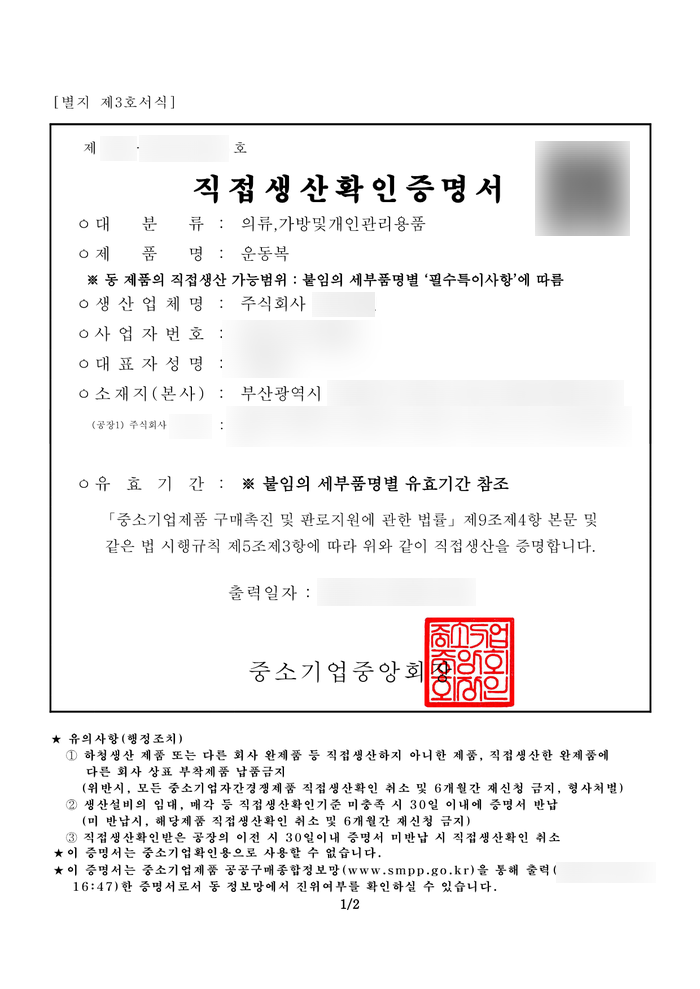 오늘은 입찰에 자주 활용되는 운동복, 근무복, 속옷의 직접생산확인증명서 발급 관련 내용입니다.