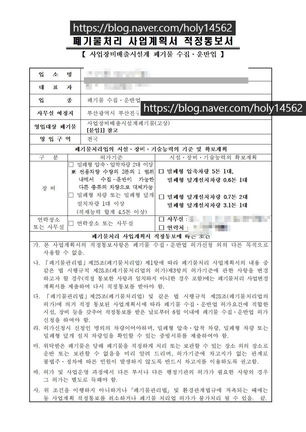 부산 진구 폐기물수집운반 허가 사업계획서 적정통보 수령