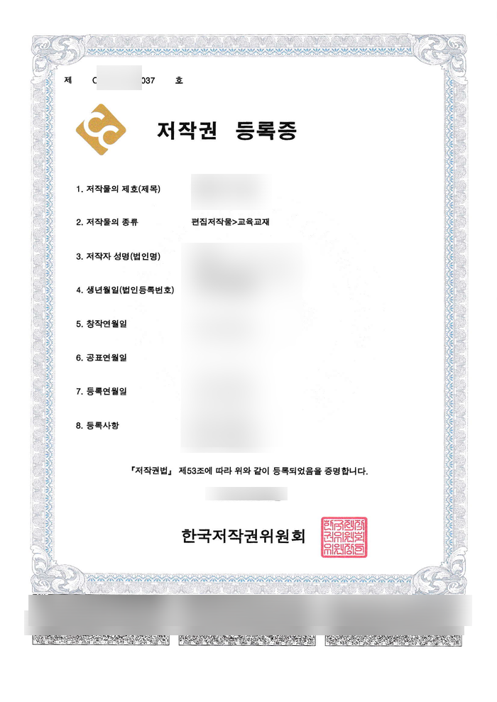 저작권 등록 결과 / 서적 / 편집저작물, 교육교재 저작권 등록