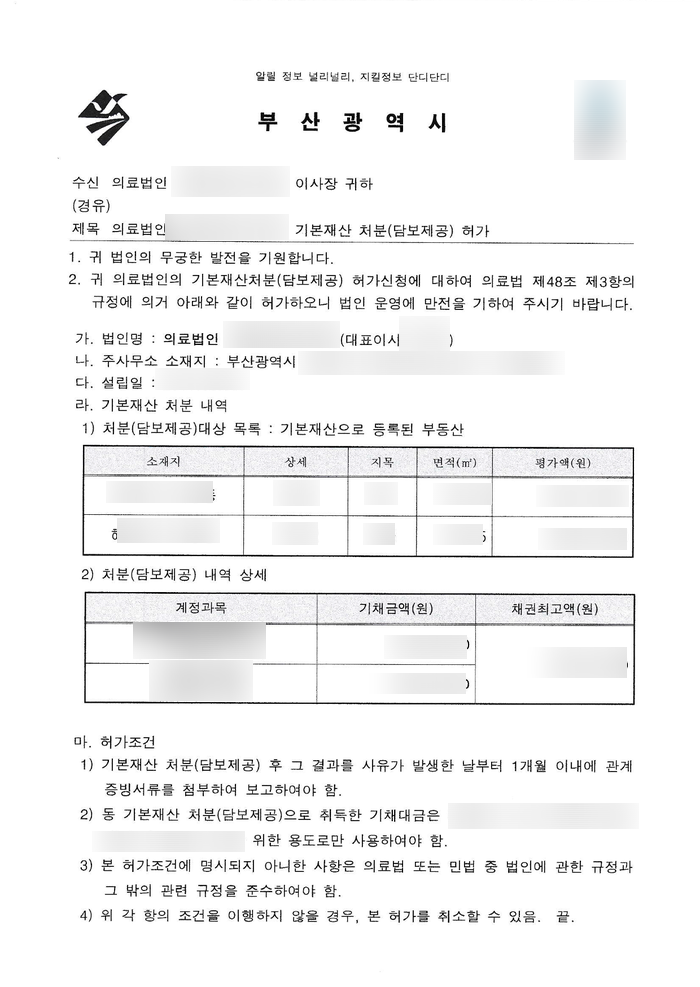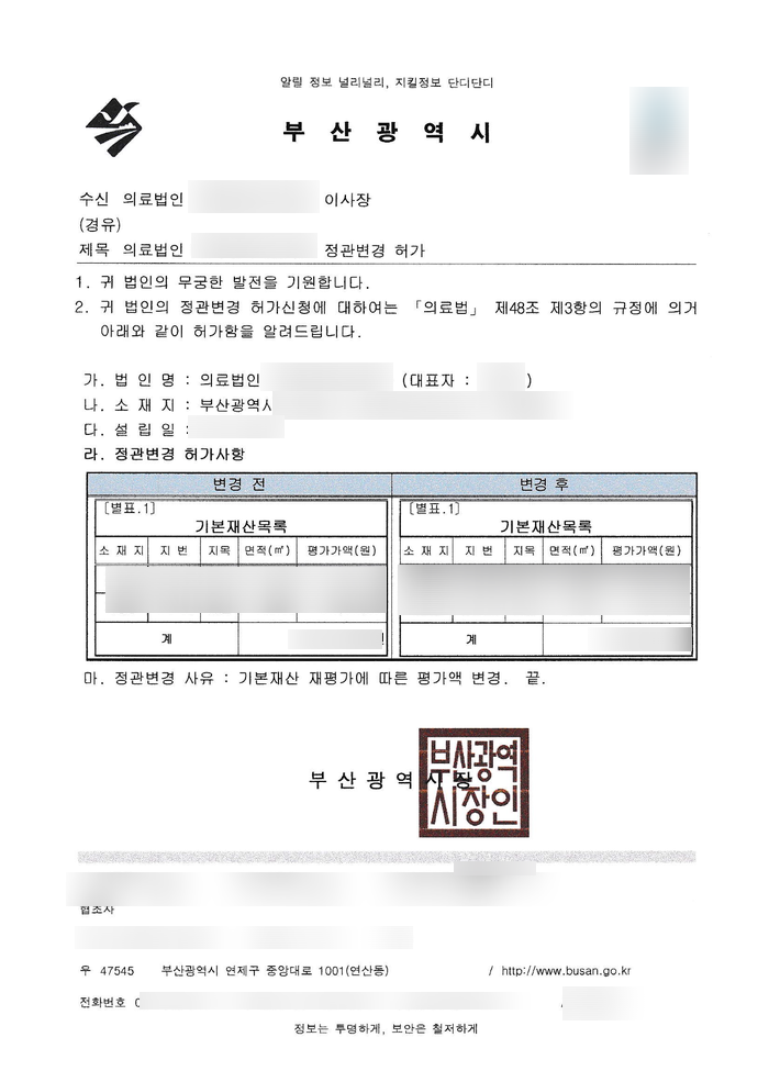 다만, 정관 변경과 기본재산 처분 허가에 대한 권한은 시청에 있어도, 병원 자체에 대한 허가는 보건소에 있기 때문에 협조가 필요한 사항이 있습니다.