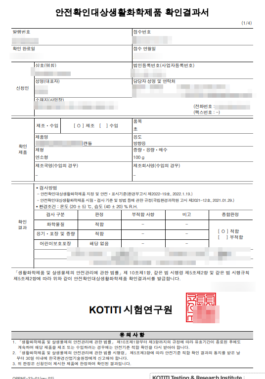 방향용 초의 생활화학제품 신청에 대해 알아보겠습니다.