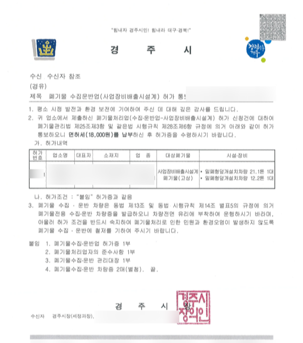 폐기물수집운반 허가