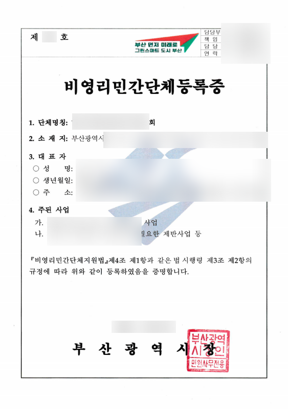 비영리민간단체는 비영리민간단체 지원법에 따라 중앙부처 혹은 지방자치단체(시청, 도청)에 등록이 되며, 등록이 되면 사업에 지원하여 정부 보조금을 받을 수 있습니다.