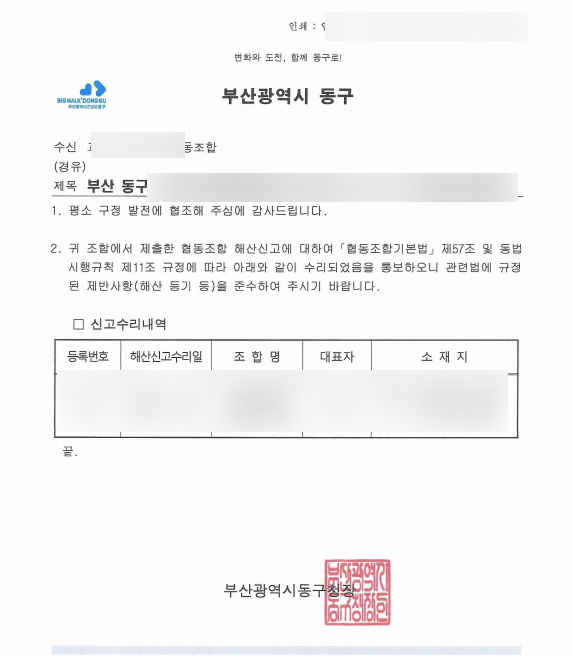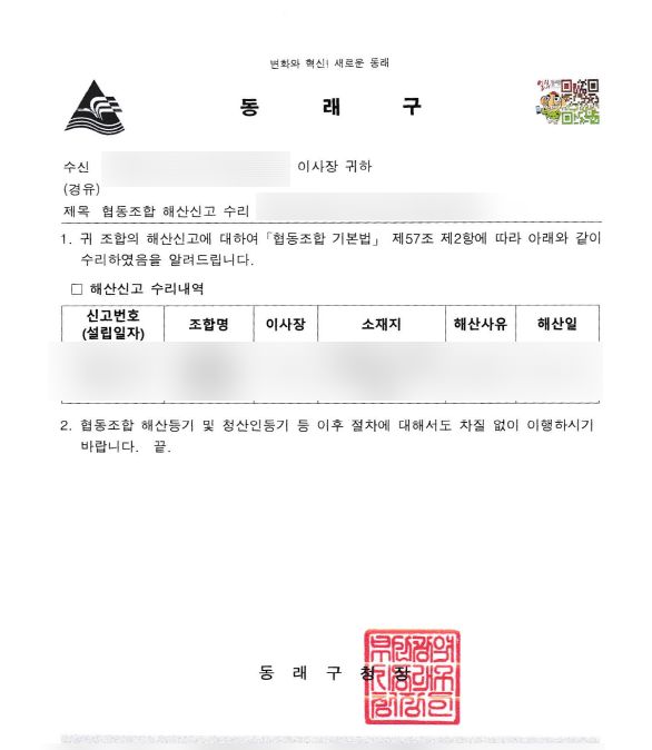 협동조합 해산 관련하여 고민이 있으시거나, 업무 도움이 필요하신 경우 언제든 연락주시기 바랍니다.