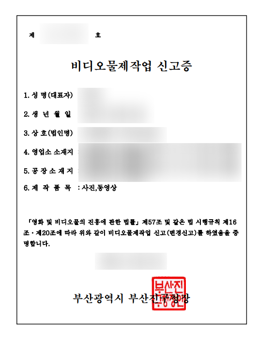 비디오물제작업 신고 서류 및 절차 / 동영상제작 직접생산확인증명서 발급