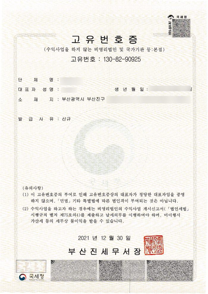 임의단체 등록 / 고유번호증 발급 / 단체 설립 방법은?