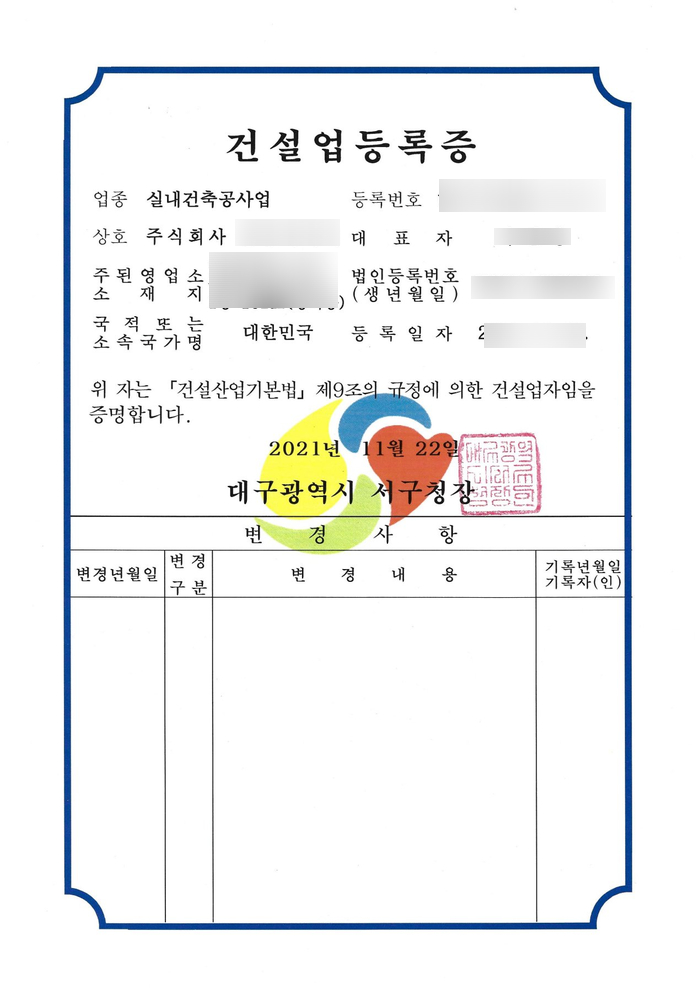 건설업 등록 / 실내건축공사업 등록 / 전문건설업 등록